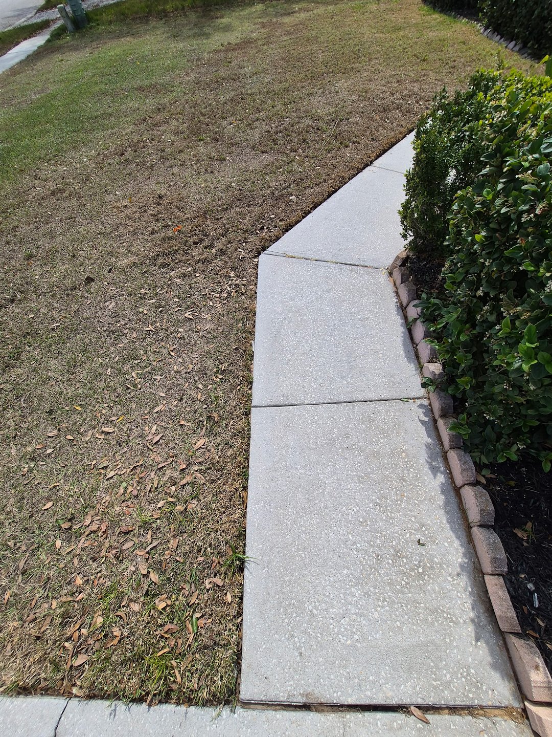We recently completed a full driveway, sidewalk, and walkway pressure washing project right here in Clermont, FL. The concrete had significant organic growth and discoloration caused by moisture, shade, and everyday wear. Using commercial-grade surface cleaners and professional pressure washing equipment, we safely removed years of buildup and restored the concrete to a clean, bright, uniform finish without streaking or damage.